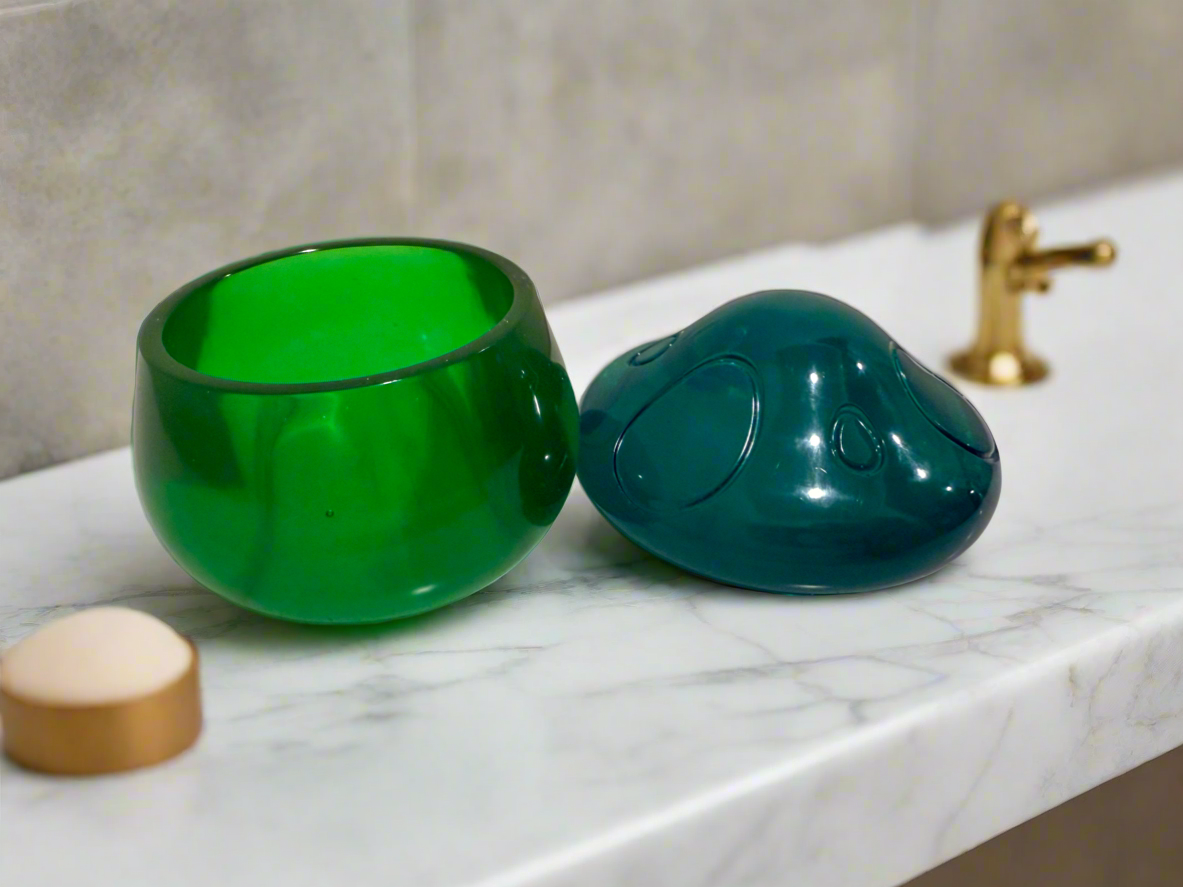 Mushroom jewelry holder made of epoxy resin. Approximately 4 inches in height and 4 inches wide.
