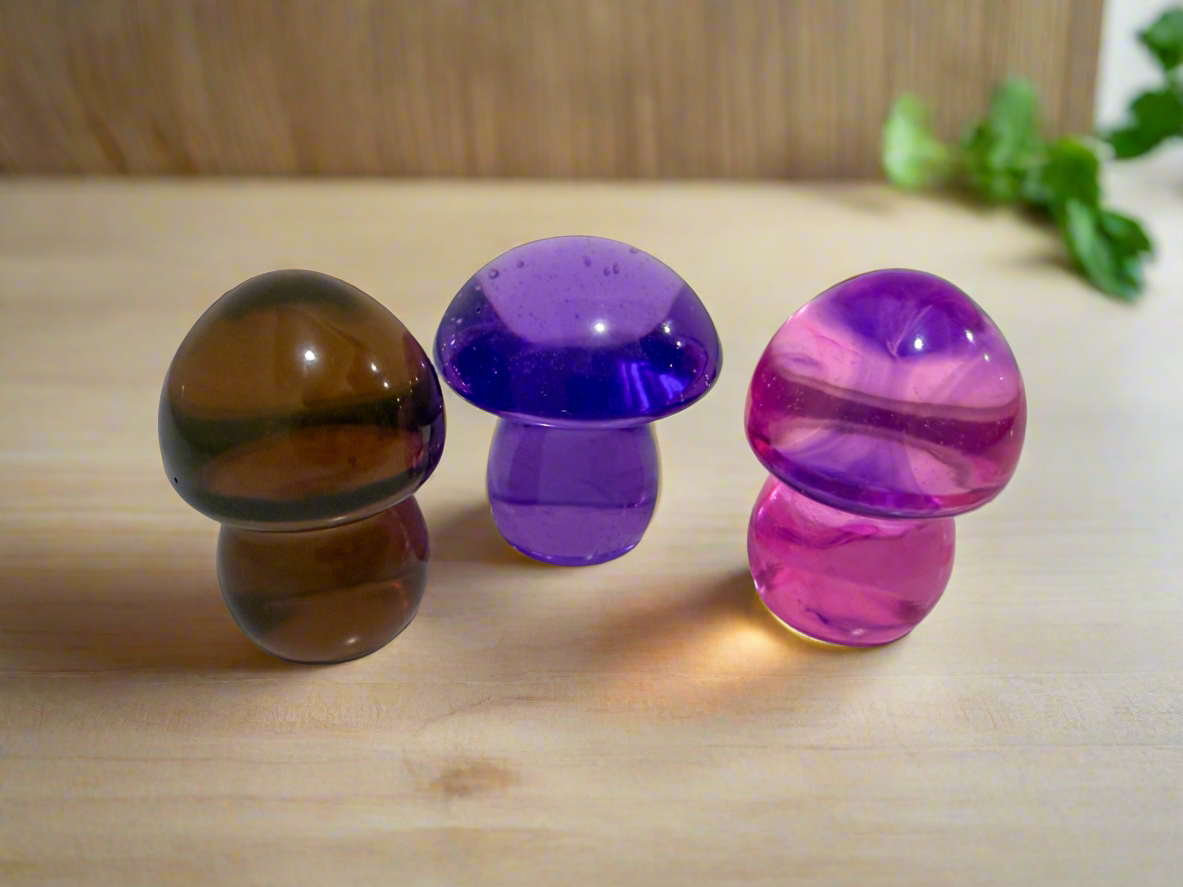 Set of 3 mushrooms. Approximately 1.5 inches in height. Made with epoxy resin.